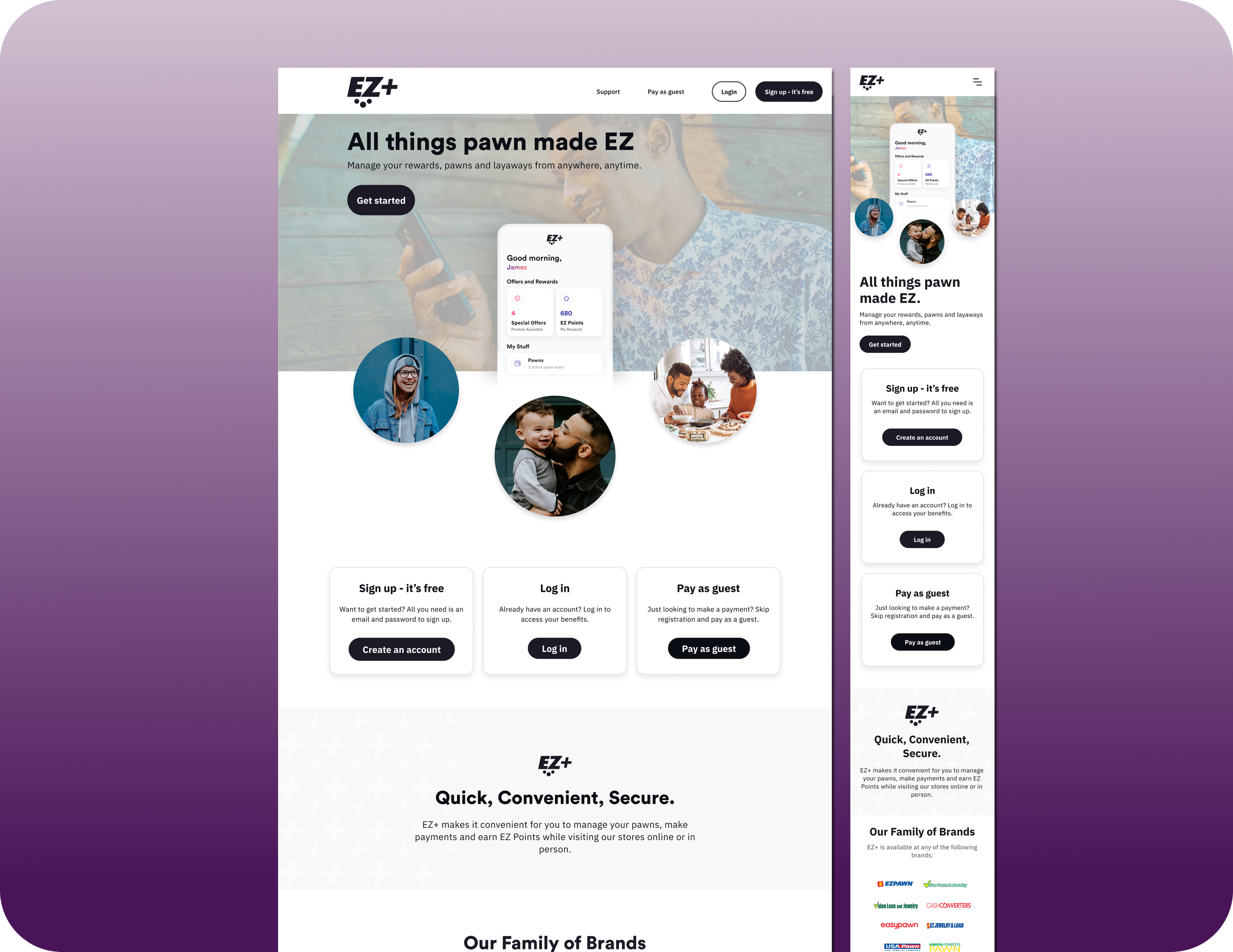 Existing enterprise customers already connected to EZ+ required a dedicated enterprise experience with branded content tailored to the specific store they were affiliated with. This approach preserved brand familiarity and reduced confusion during the acquisition, particularly as visual identities, colors, and naming differed from what users were accustomed to. To support continuity and adoption, branded landing pages were designed to guide users through sign-up and encourage ongoing engagement with the platform.